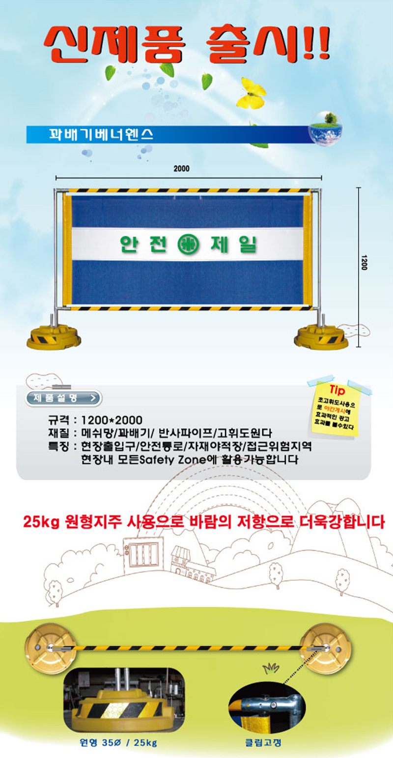 ▶ 규 격 : L2000 혹은 L2500 mm(OPTION) * H1100~1200mm (설치후 지반에서 상단까지)