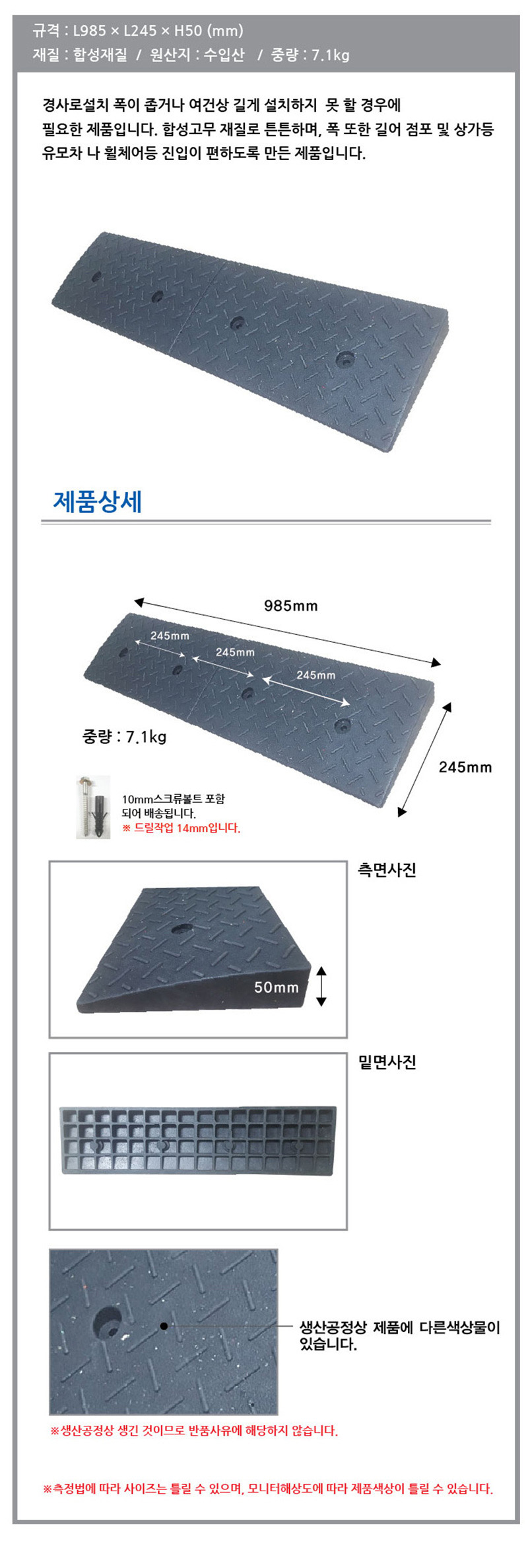 ▶ 규 격 : 985*245*H50