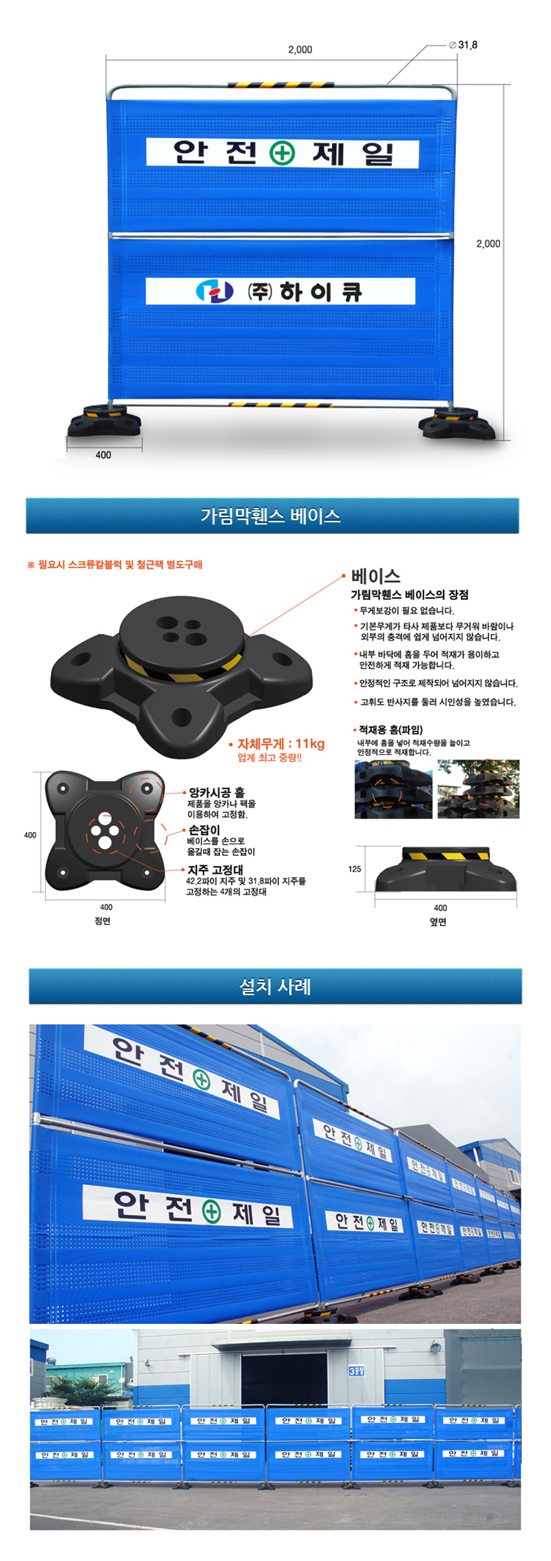 ▶ 규 격 : 1) 휀스 : L2000 x H2000mm (설치면 에서 상단까지)