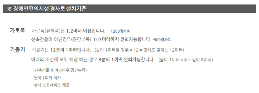 <참고>장애인편의시설 설치기준 세로길이 = 높이*12
