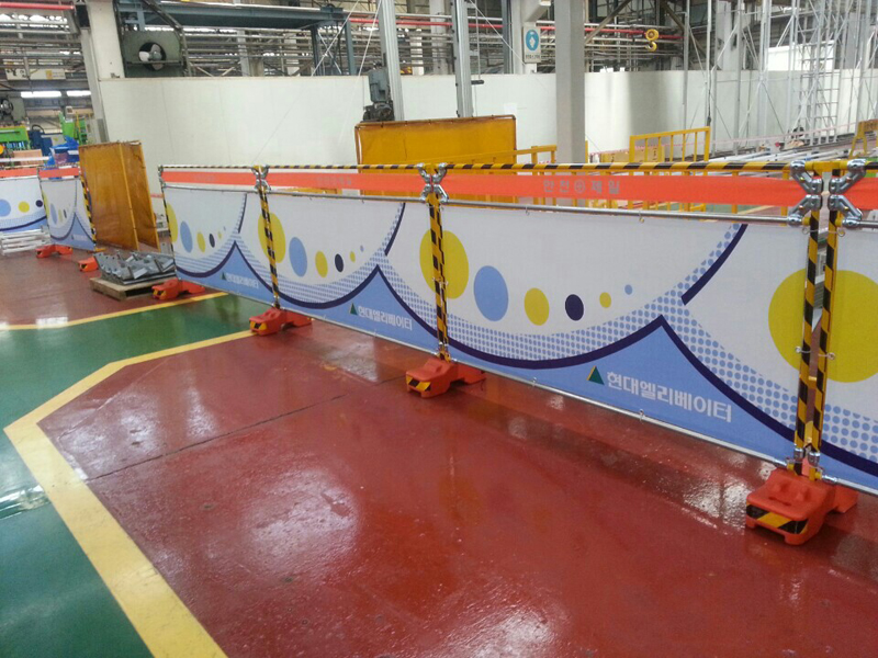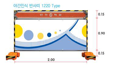 + 상부에 야간인식 웨빙띠+ 실사인쇄 타포린막 + PE하부받침대(내부 CONC.)