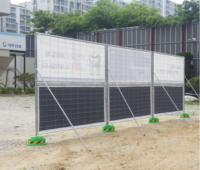 ※ 아래 이미지는 1단의 휀스 바탕을 'PVC메쉬망' 대신 '타포린막' 으로 설치한 상품