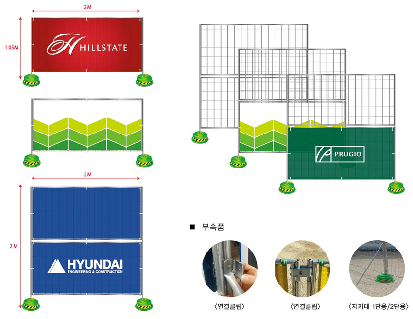 안전용품&안전시설재 전문 비투비마트 - H2000*L2000 가림막휀스 ES2020-M(철망/PVC망)