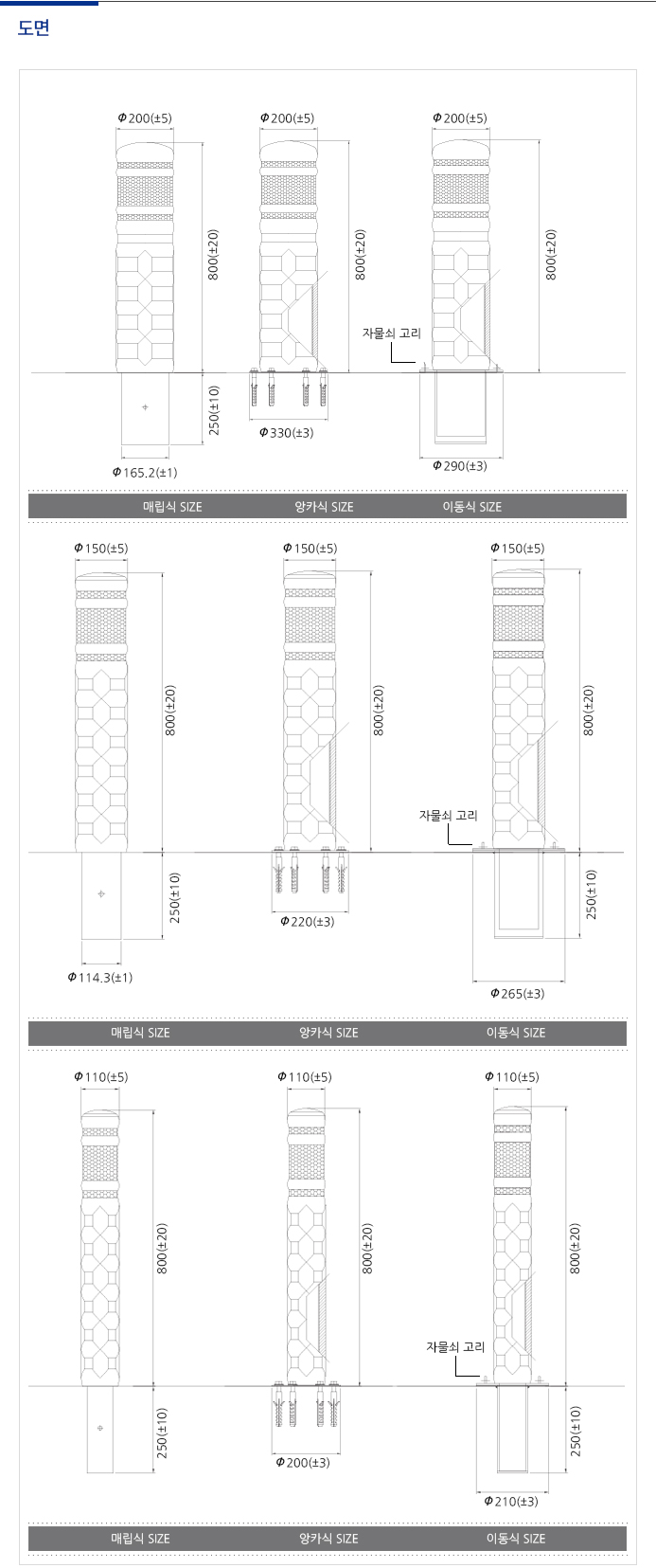 *Ø200 볼라드제품은 단종