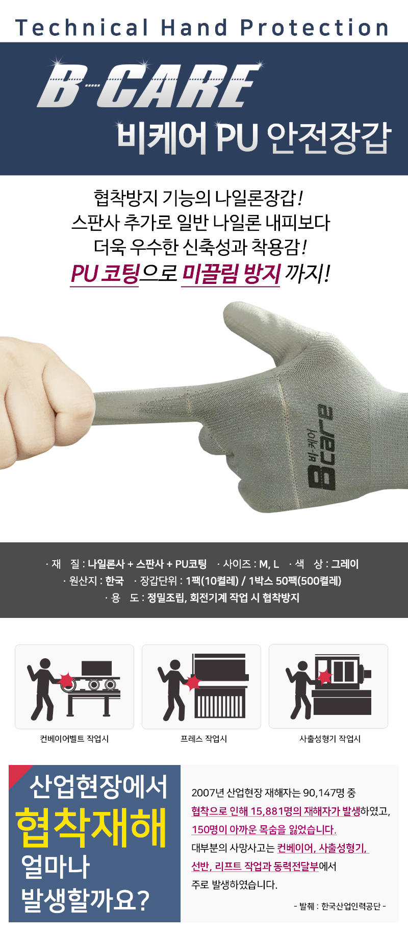 뜯김장갑,협착방지장갑,비케어 PU코팅(10켤레)